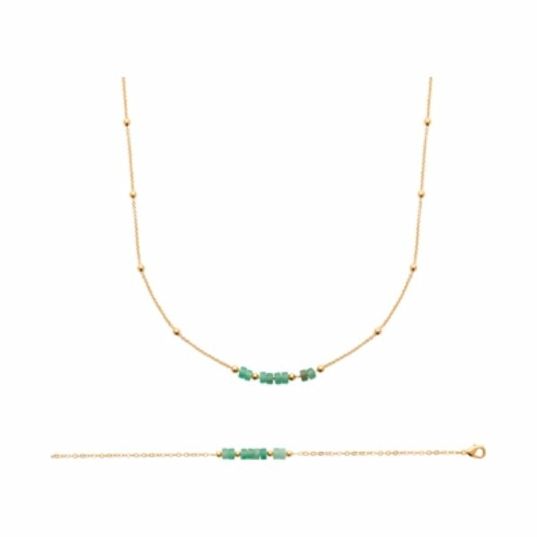 Collier en plaqué or et aventurine, 45cm