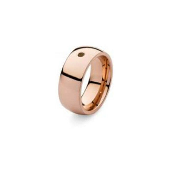 Bague QUDO Firenze en métal doré rose et pierre de couleur heather, taille 54