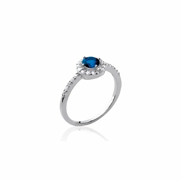 Bague en argent rhodié, oxydes de zirconium et pierre véritable