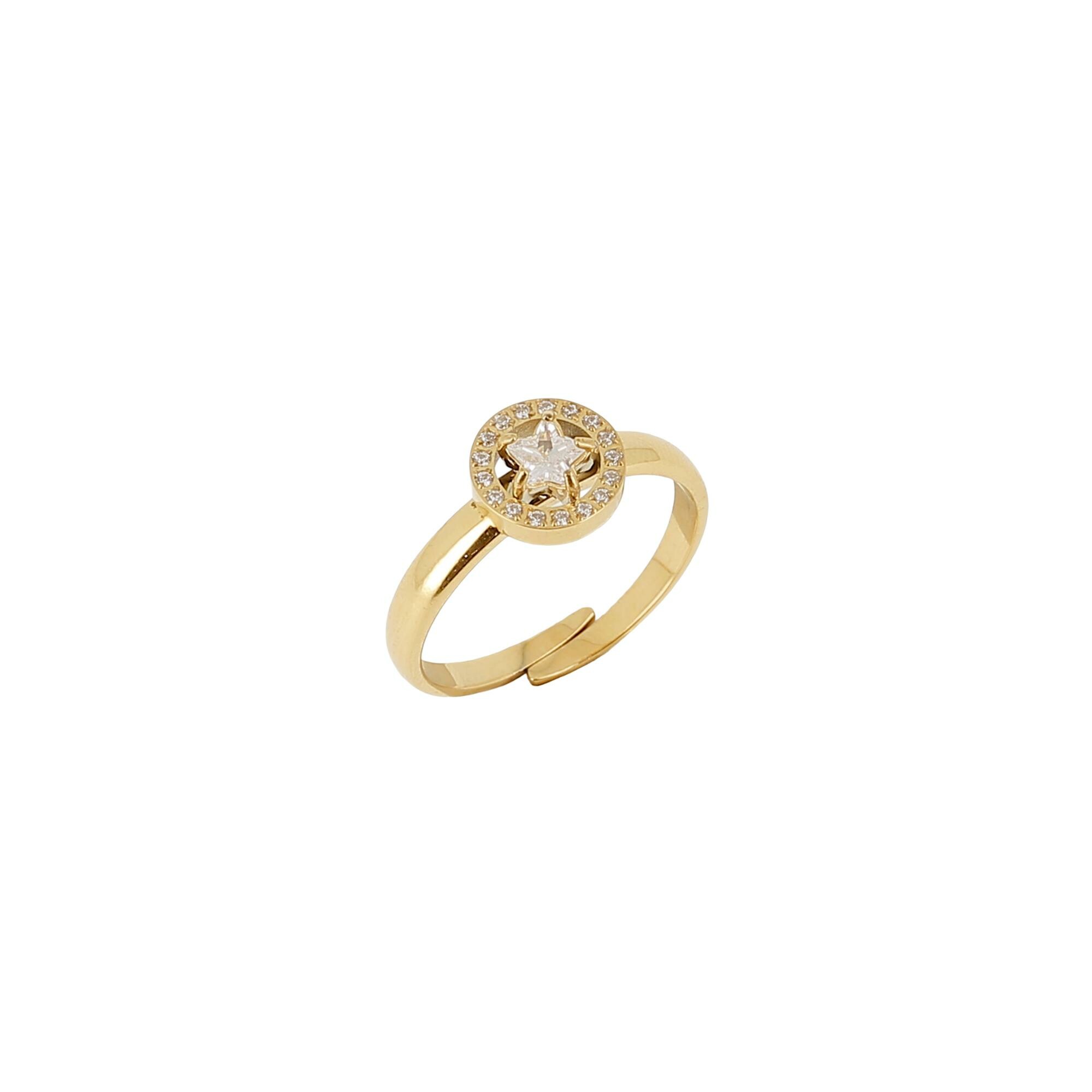 Bague Zag en acier doré et oxyde de zirconium, taille ajustable
