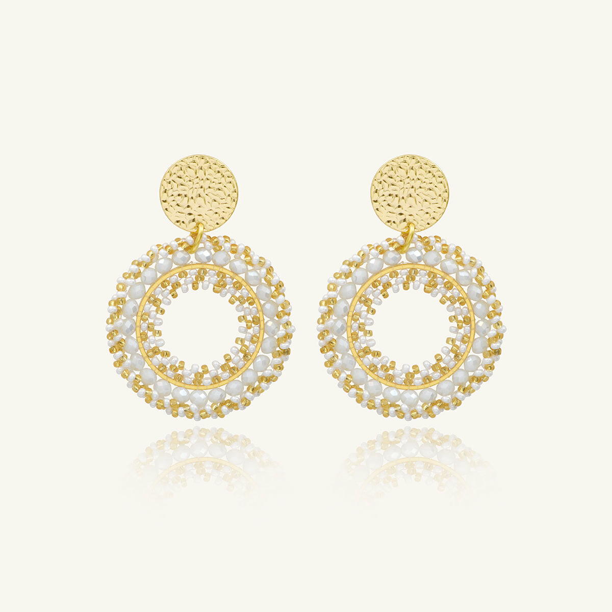 Boucles d'oreilles Sàntibé Bijoux Atacama en laiton, métal doré et perles blanc doré