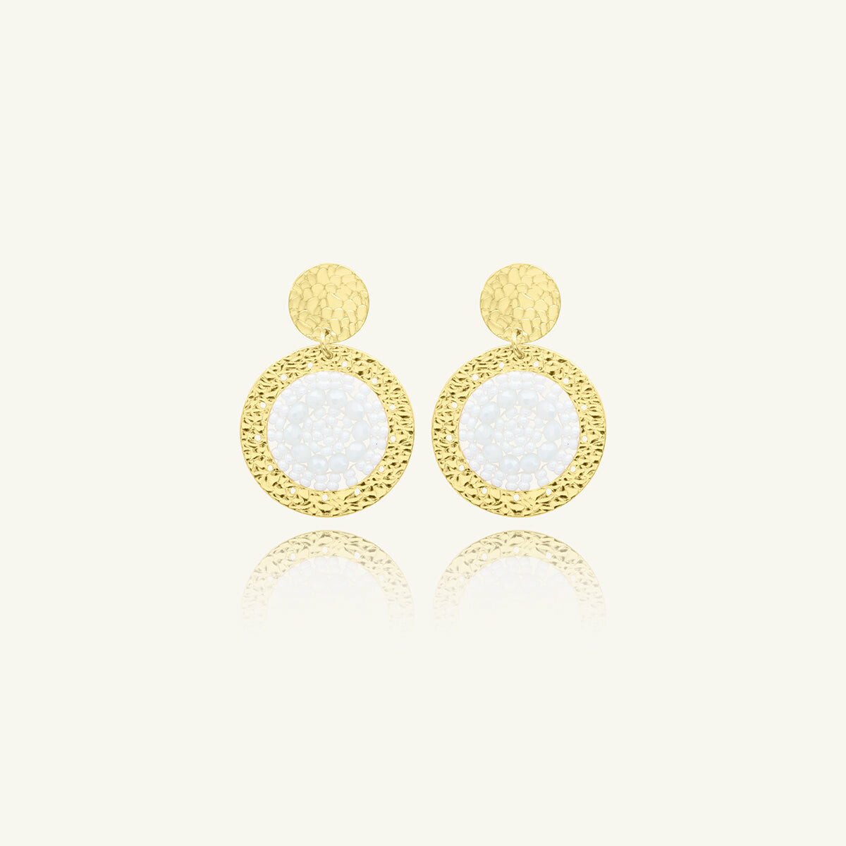 Boucles d'oreilles Sàntibé Bijoux Mini Patagona en laiton, métal doré et perles blanc